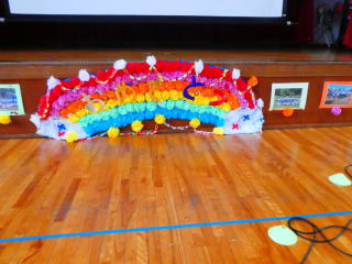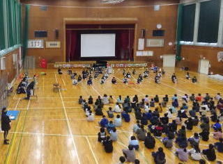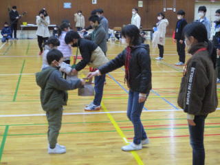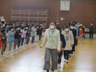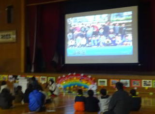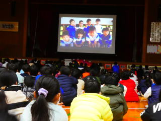 第3部は、全校集まっての会をしました。 たてわりはんの引き継ぎや6年生からのプレゼント 6年生の発表、思い出スライドショーがありました。 |