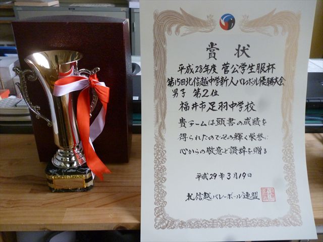 見事に男子バレーボール部は、北信越中学校優勝大会において、準優勝を成し遂げました。