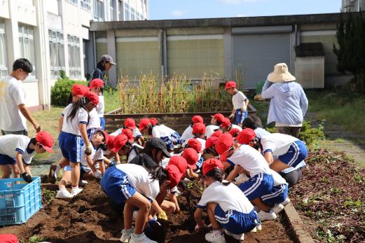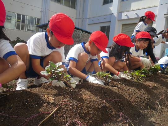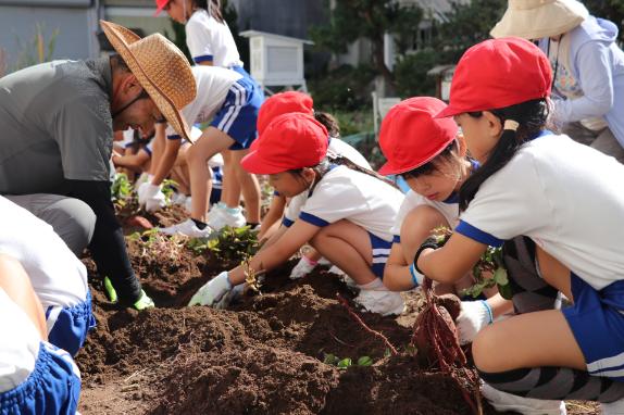 春に植えたさつまいもを、1年生みんなで一緒に掘る日がやってきました。