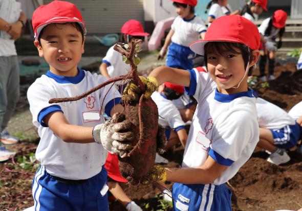 予想以上に大きく実ったさつまいもを見て、子ども達もびっくりしていました。