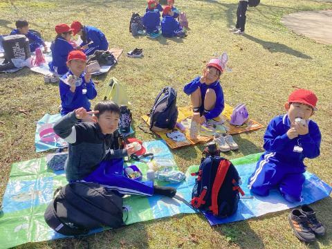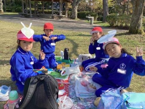 天気も良く、お弁当は外の芝生で食べました。友達と一緒に食べるお弁当は、特別においしかったですね。