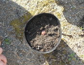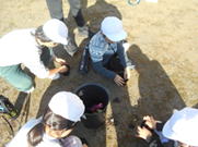 市職員から説明を聞いたあと ポットにどんぐりの実をまき