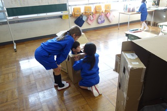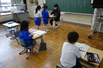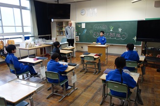 東京から越廼小学校へ体験留学として2人(兄弟)のお友達が来てくれました。全校集会で紹介した後、学級では自己紹介などを行いました。