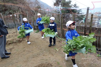 1・2年生は1限目に学校農園に出かけ、最後の大根収穫を行いました。前回、前々回よりもさらに生長した大根は立派な太さとなっていました。来週の大根パーティーが楽しみです。
