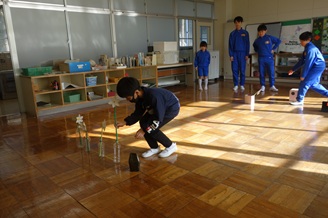 2時間目からしおかぜタイムにかけて、なわとび大会を行いました。体育館は昨日と同じ室温が6度と厳しい寒さでしたが準備運動や直前練習を万全にして競技に臨みました。