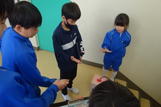 しおかぜタイムでは、3・4年生企画のなかよし遊びがありました。学校全体をすごろく会場に設定し、班ごとにお題をクリアする遊びでした。音楽室では校歌を歌ったり、階段ではジャンケングリコで遊んだり、しおかぜルームでは水仙の花植え競走をしたりしました。