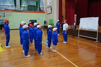 2時間目の時間、明日のなわとび大会のリハーサルを行いました。開会式から本番通りに進めながら、個人の技とびや全員での大なわ、8の字とびを行いました。