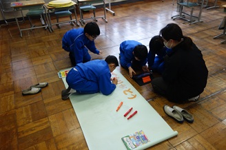 3・4年生は6年生を送る会の準備をしていました。感謝の思いや思い出の振り返りなどを、模造紙に表現する子や、タブレットで動画をつくる子などアナログとデジタル両面の作品づくりを見ることができました。