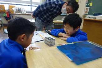 3・4年生は理科の時間、磁石のはたらきについての実験を行いました。実験ケースに入った砂鉄に磁石を近づけると、どのような変化が見られるか、実験を通して磁石のはたらきを考えました。