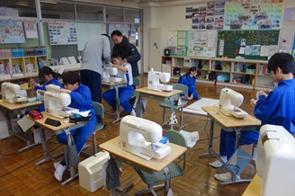 5・6年生は家庭科の時間、小物づくりを進めました。作品づくりの工程には随分となれた様子ですが、ミシンのトラブルなど、いろいろな壁にぶつかりながら作業を進めています。