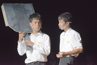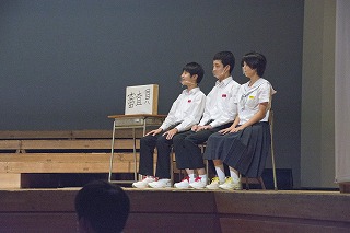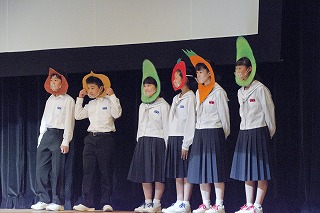 | 文化祭 9月9日(水) 文化祭がフェニックスプラザにて行われました。学年発表では、各学年が工夫を凝らし、踊りやダンス・劇などで会場を盛り上げていました。また、各委員会の発表でも、劇や踊り・漫才など様々な工夫を凝らし、分かりやすく、学校生活で大切なことを伝えていました。 |