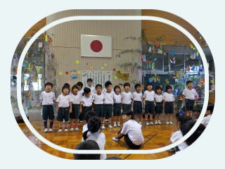 ▼たなばたしゅうかい▼小学1、2年生と一緒に七夕集会を行いました。 みんなで考えた「はじめのことば」を元気よく言えました。 |