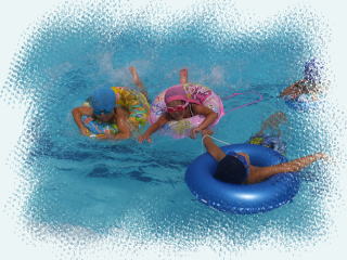 ▼プールあそび▼大きいプールに入りました。プールが大好きなみんなは大喜びです☆ |