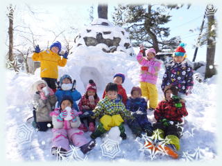 ▼ゆきあそび▼雪が降ると元気いっぱいに雪遊び!晴れて朝が冷えた日は、つるつるに滑って楽しいですね。 |