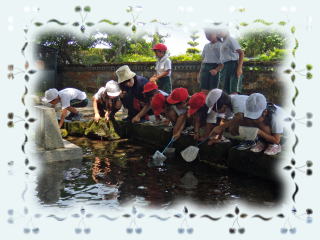 ▼えんがいほいく▼岡の泉まで出かけました。サワガニ・ヤゴ・・・生き物探し楽しかったね! |