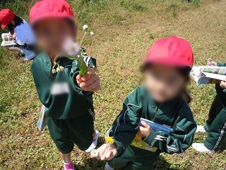 「せんせ〜、たんぽぽ見つけたよ!!」