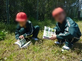 自分の図鑑で見つけた植物や虫の名前を探していました。