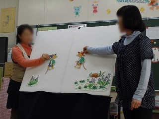 みんながっちゃんとこっこちゃんのお話の世界に引き込まれていました。 |