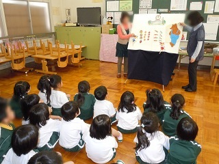 4/26(月)「がっちゃん」と「こっこちゃん」が、幼稚園来てくださいました。これからも毎月1回、に楽しいお話をしに来て頂けます。