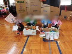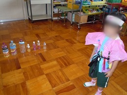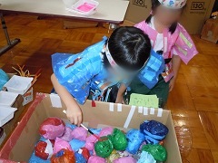 | くじびき くじをひいたあと出た数のボールをもっ て的当てに挑戦しました。 |