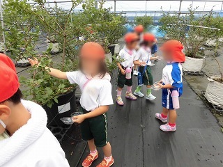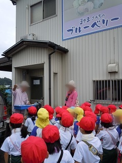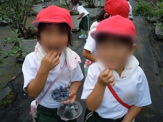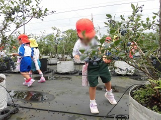 7月4日(月)、東藤島幼稚園のお友だちと一緒に、「まやまさんちのブルーベリー」にブルーベリーつみに出かけました。
