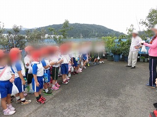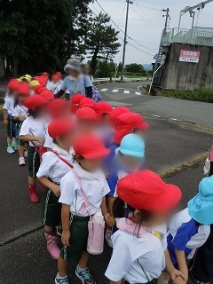 | お兄さん、お姉さんになって3,4才児の小さなお友だちの手をしっかり握って歩いていました。 | ![]() |