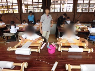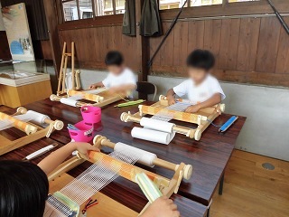 | ▲見学のあとは、機織り体験をしました。自分で選んだ糸を使ってコースターを作りました。とても素敵なお土産ができて、みんな大喜びでした。 |