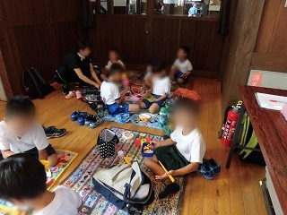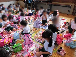 7月28日(木)、東藤島幼稚園、下宇坂幼稚園、一乗幼稚園、羽生幼稚園とのお友だちと夏の交流保育をしました。バスに乗っての行き先は、ゆめおーれ勝山でした。
