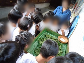 生きているカイコを見ました。カイコがまゆを作る様子を見ていました。 |