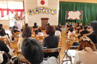 お家の方も、たくさん入園式に出席してくださいました。笑顔いっぱい、カメラ・ビデオいっぱいの会場でした。