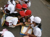 | 12月10日(水) 版画を刷りましょう 各学年図工の時間に版画に取り組んでいますが、いよいよ印刷に入った学年がありました。特に2年生は、大きな模造紙に一人一人の作品を印刷し、大きなサツマイモ掘りの版画ができていました。 |