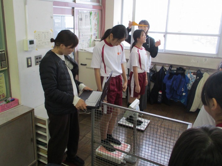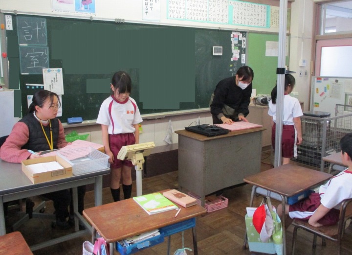| 2月6日(金) 2年生の身体測定がありました。 2年生の今年度最後の身体測定がありました。身長体重を計った後、養護教諭の先生から、風邪をひかない健康な体についてのお話がありました。児童からは、「早起きをしたい」「朝ご飯を食べたい」等の感想が聞かれました。 |