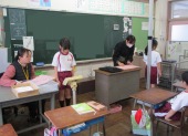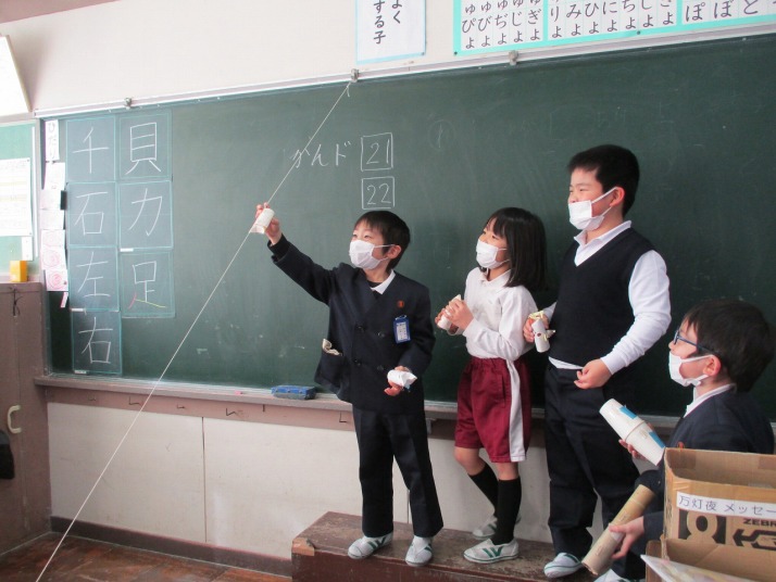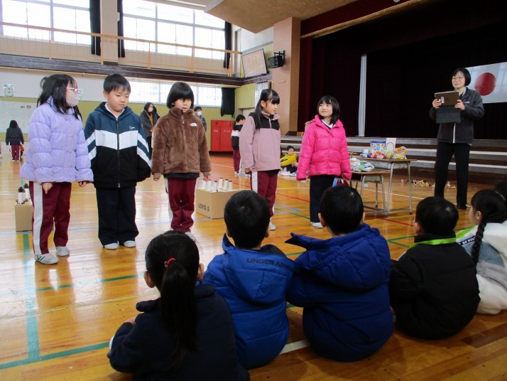 | 2月4日(水) わくわく交流デー開催。 今日は、4月に入学してくる園児さんの体験入学「わくわく交流デー」がありました。これまでに1年生は、様々に準備をしていました。体育館でのふれあいタイムでは、園児さんと手をつなぎおもちゃコーナーに誘導したり、おもちゃの遊び方を教えてあげたり、優しいお兄さんお姉さんでした。教室での1年生の学習体験では、名前を書いたりタブレットを使ってひらがな書きをするなど、1年生の学習体験を優しくリードしていました。すっかりお兄さんお姉さんっぽくなって活動することができました。1年生、頑張りましたね。 |