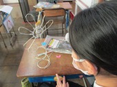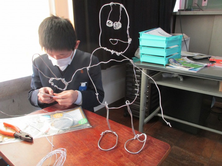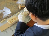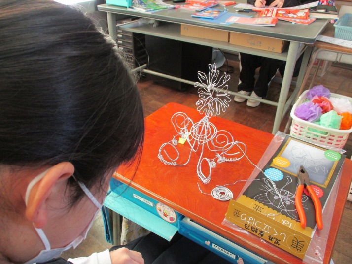 | 2月12日(木) 図工の作品づくり。 今日は、図工の作品を作っている学級がいくつかありました。6年生は卒業制作。色紙を入れる額づくりをしていました。周りに作図しての彫刻刀で彫り進めていました。さすが6年生。素敵なデザインがたくさんありました。 5年生は、針金で立ち上がる作品を作っています。植物やオブジェンなど工夫された作品がたくさんありました。 1年生は、「するするびゅーん!」。紙コップや芯を使ってロープウエーのように糸をするするーっと滑り落ちていく鳥やロケット、飛行機などを上手に作って飛ばしていました。 |