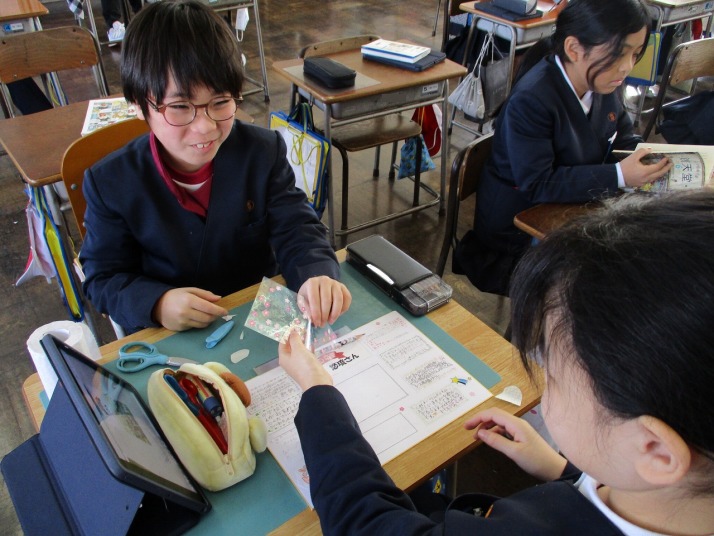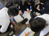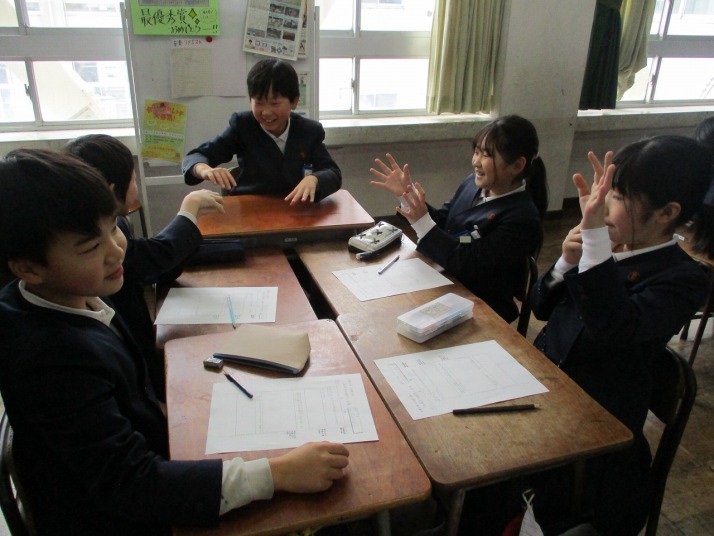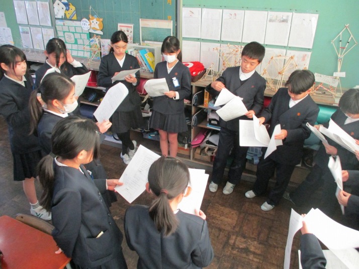 | 2月5日(木) 卒業を祝う会に向けて。 19日に行われる卒業を祝う会に向けて、5年生は協力し合って準備を進めています。今日は大休みに集まって準備を進めていました。みんながんばれ!素敵な祝う会、期待しています! |