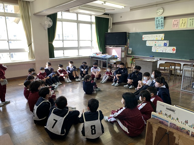 | 3月1日(水) 卒業を祝う会 第1部は、各教室でたてわり班ごとに交流をしました。 4年生の初めの挨拶から始まり、3年生によるスローガン唱和、5年生が考えたたてわり班遊び、2年生のロゼットのプレゼント、1年生の色紙のプレゼント、そして最後は6年生からの一言で締めくくりました。 今年度はたてわり活動があまりできませんでしたが、その分今日はどの班も楽しそうに遊ぶ様子が見られました。 6年生も下級生と楽しそうに遊んだり、下級生からもらったプレゼントを眺めていたりして、とても嬉しそうな表情をしていました。 第2部は、体育館に全校児童が集まり活動しました。 5年生が中心となって進行し、準備してきた劇やクイズなどをみんなで楽しみました。 6年生からは、お礼の劇や校旗の引き継ぎがありました。 今日の卒業を祝う会で、1~5年生は、今までお世話になった6年生に感謝の気持ちを伝え、卒業を祝うことができました。 また、6年生は、みんなの気持ちをしっかり受け止め、卒業に向けての気持ちを高めることができました。 みんなが心温まるすばらしい「卒業を祝う会」になりました。 |