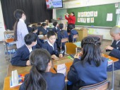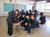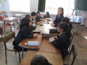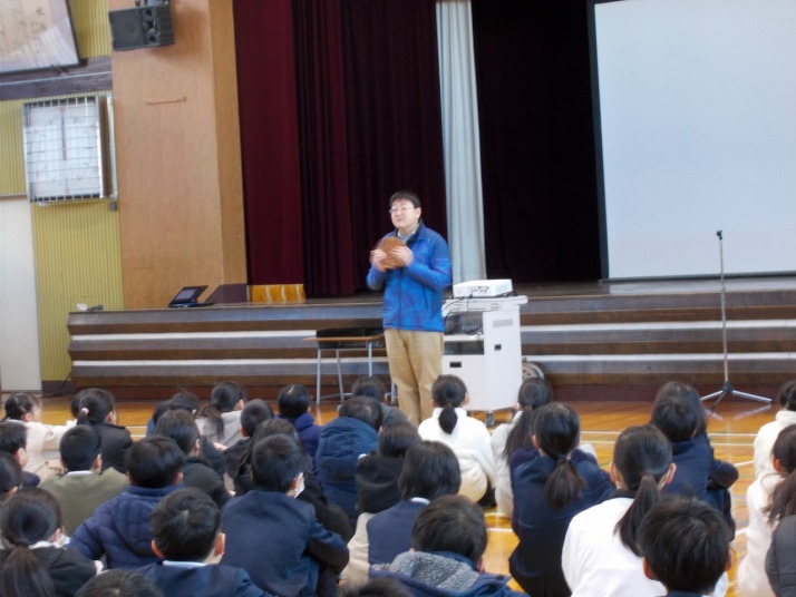 | 12月11日(木) 栄養教諭訪問がありました 6年生で栄養教諭による食に関する指導が行われました。6年生は小学校での最後の指導ということで、卒業後にも生活習慣帽になあないために、S(塩)O(脂質)S(砂糖)の量に気をつけるなど栄養を考えながら生活しようとのお話がありました。 |