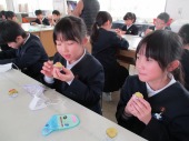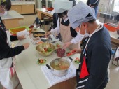 | 12月16日(火) 栄養バランスを考えて食事を作ろう 6年生の家庭科では、栄養のバランスを考えて献立を考え、実際に調理をしました。それぞれが考えた献立にしたがって材料を準備し、調理をしていきました。そして今日の昼食としておいしくいただきました。 |