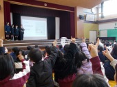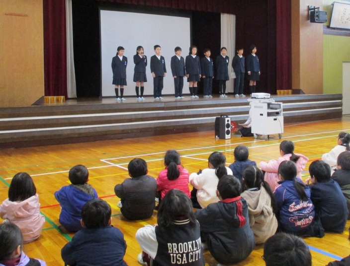 | 12月17日(水) 読書集会がありました 11月の読書集会で行う予定だった図書委員会からの発表を、今朝のハーモニー集会で行いました。年間のベストリーダーや、たくさん貸し出された本などの紹介がありました。またその人気本のクイズもあり、楽しい時間をみんなで過ごすことができました。図書委員会の皆さんは、今日に向けてシナリオを暗記し、しっかり前を向いて話をすることができました。これまでの練習、ご苦労様でした。とても良い発表になりましたね。 |