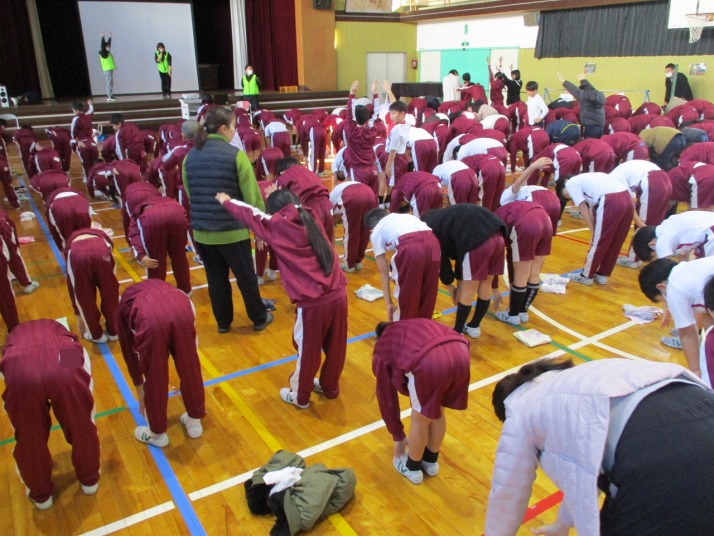 | 12月18日(木) 学校保健委員会がありました。 福井県理学療法士協会から講師の先生が来校し、ストレッチなどの体験を通して良い姿勢の大切さを教えていただきました。講師の先生からは、良い姿勢を保つためには、生活習慣に気をつけることが大切とののお話をいただきました。加えて、同じ姿勢でいるのではなくいろいろな姿勢を取る、1日に60分以上の運動をすることなども大切であると教えていただきました。今回教えていただいたストレッチ実行しながら、良い姿勢を取っていきましょう。 |