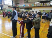 | 12月19日(金) クリスマス集会がありました。 運営委員会主催のクリスマス会がありました。クリスマスに関する劇ではサンタクロースとブラックサンタが出てきて、悪い子にはブラックサンタからの嬉しくないプレアぜっbとがとどくとのお話でした。途中、全校児童でじゃんけん列車を行い、勝ち残った人も芸に参加できるというサプライズもありました。運営委員会さん、楽しい会をありがとうございました。 |