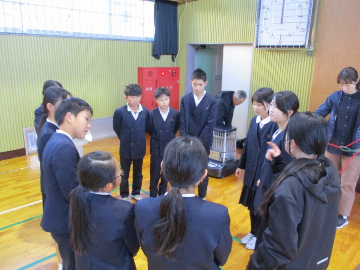 | 12月12日(金) 集会の準備、頑張っています 昨日は、健康委員会の発表がありましたが、今後クリスマス集会や読書集会があるということで、委員の皆さんは朝や大休み等に練習をしていました。東郷っ子の皆さん方の楽しんでくれるよう頑張っていました。 |