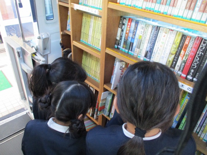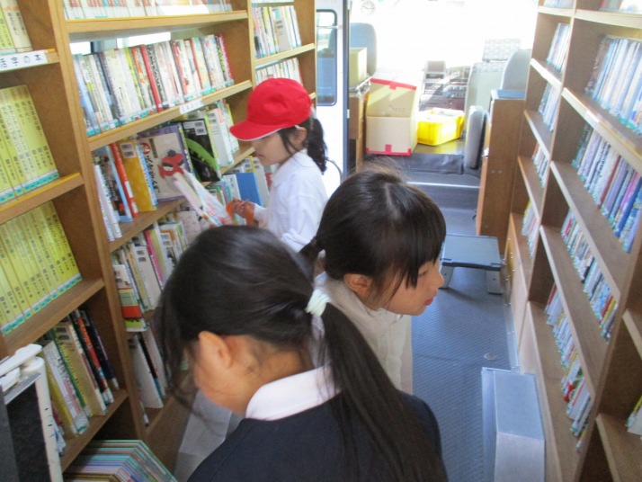 | 12月19日(金) フェニックス号がきました。 毎月の移動図書館営が来校しました。冬休みに向け、たくさんの児童が本を借りていました。イベントの多い冬休みですが、静かに読書をして過ごすのもいいですね。 |