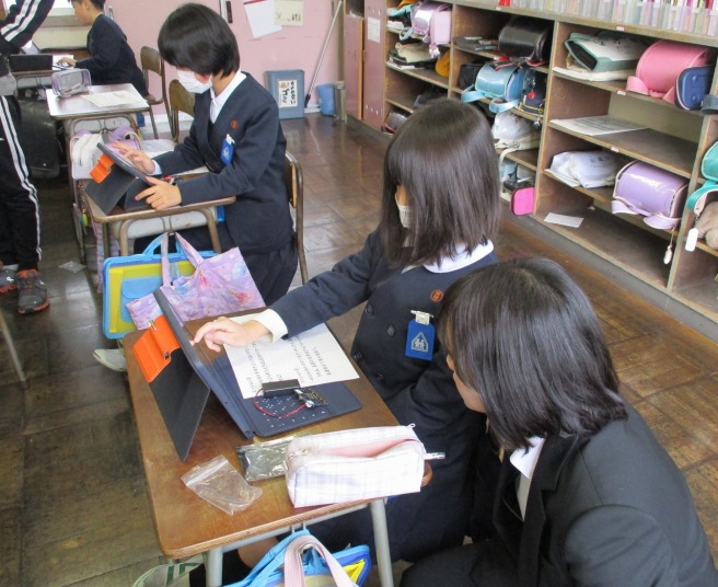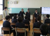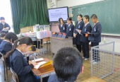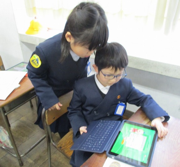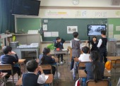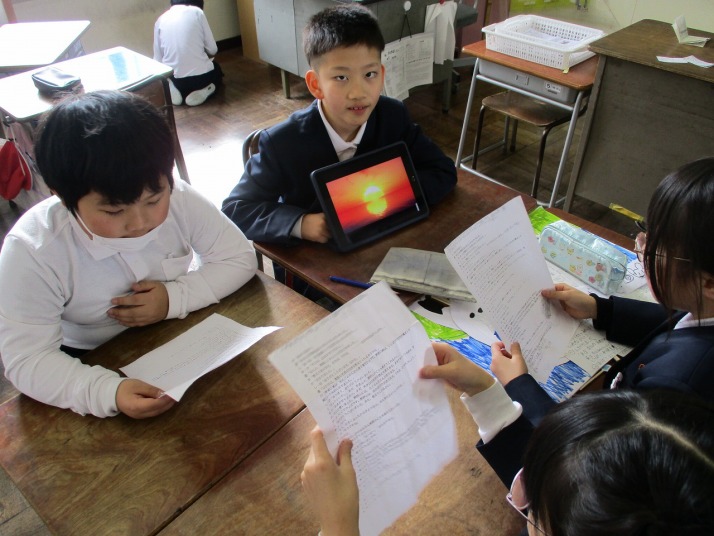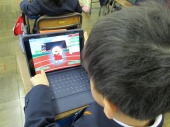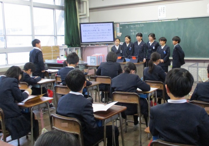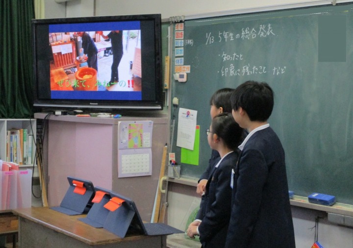 | 1月13日(火) 5年生、総合学習の発表がありました。。 5年生がこれまで調べてきた地域の企業についてのまとめ、4年生に発表をしました。タブレットを用いてのプレゼンは、どのグループも画像や文章を工夫していて大変わかりやすくなっていました。また、途中で作成したCMも流れるなど、東郷地区の企業についてよくわかる内容となっていました。 |