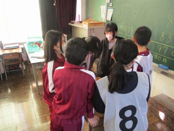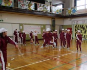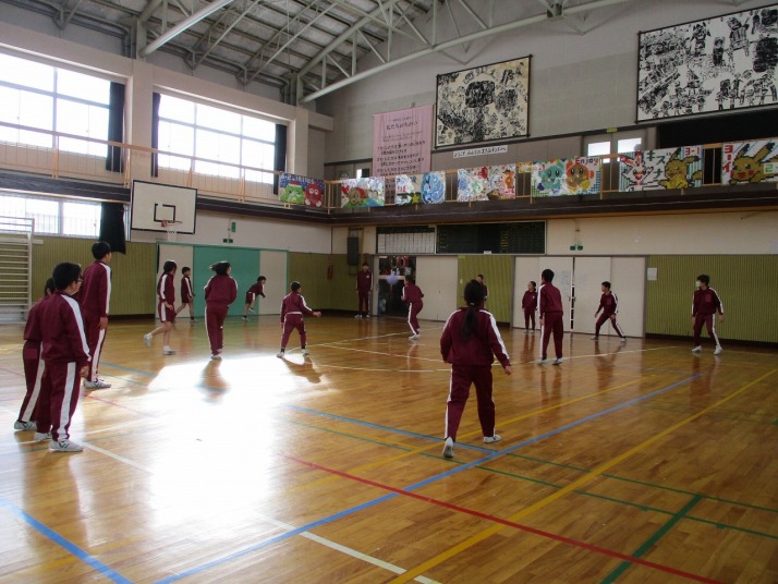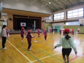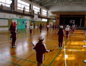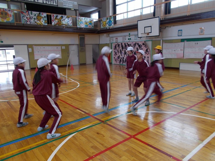 | 1月27日(火) 2,5,6年生なわとび大会。 今日は、2,5,6年生のなわとび大会がありました。時間跳び、学年種目、個人種目などがあり、これまで練習してきた成果を発揮しようとみんな粘り強く頑張っていました。大縄跳びでは、連続で飛び回数を増やそうと、跳ぶ人、縄を回す人が互いに声を掛け合い協力している姿が素晴らしかったです。 |