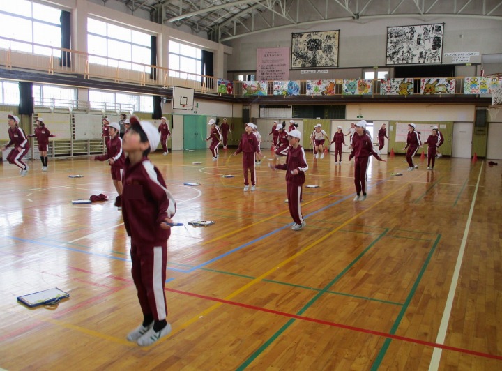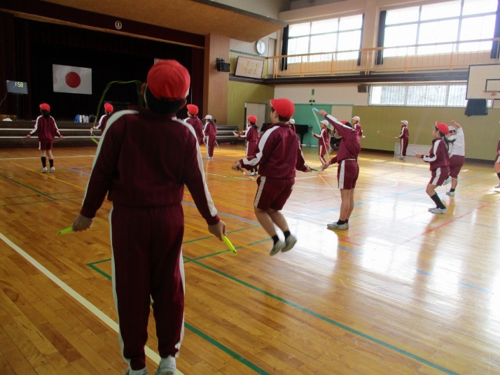 | 1月14日(水) なわとび大会に向けて 2週間後に迫ったなわとび大会に向けて、各学年の体育の時間や休み時間にはなわとびの練習に熱心に取り組んでいます。一人一人取り組む種目を決めて練習をしています。みんな頑張れー! |