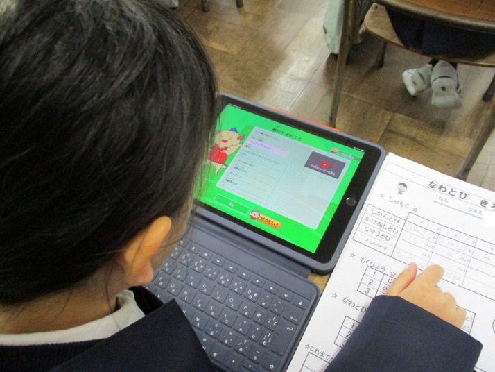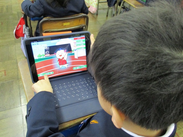 | 1月20日(火) ハピスポで目標を設定しよう。 なわとび大会が来週に迫り、各学級でなわとびの練習に熱が入っています。今日は1年生で、なわとび種目の目標を福井県内の小学生を対象とした「はぴりゅうスポーツ広場」システムに登録していました。コインゲットを目指して頑張れー! |