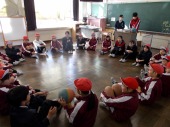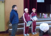 | 1月30日(金) わくわく交流デーに向けて(リハーサル)。 1年生は、来週のわくわく交流デーに向けて、体育館と教室でリハーサルを行いました。体育館では、進行係も実際にマイクを持って話してみました。ハキハキとしっかりした声で話すことができて素晴らしかったです。4日の日は、きっと子ども園の皆さんは喜んでくれますよ! |