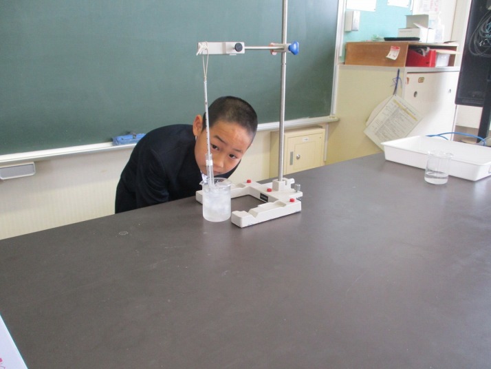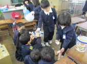 | 1月22日(木) 水のすがたと温度。 4年生の理科では、水が温度によってどのようにすがたを変えていくのかを学習しています。今日は、水を塩が入った氷水で冷やしどのように姿を変えるかみんなで実験しました。さてどうなったのでしょう。 |
