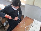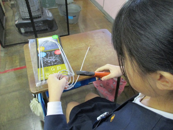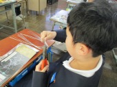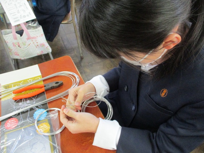 | 1月22日(木) 美しく立つ針金。 5年生の図工では、針金を使いオブジェを作っていきます。今日は材料の針金を担任の先生から受け取り、早速ペンチを使って様々な形に曲げていきました。針金達は、どんな風に美しく立ち上がっていくでしょうか。楽しみですね。 |